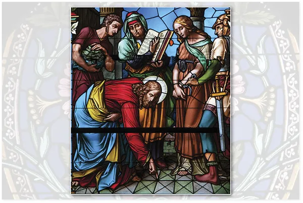 En aquel tiempo, 1 Jesús se retiró al monte de los Olivos. 2 Al amanecer se presentó de nuevo en el templo, y todo el pueblo acudía a Él, y, sentándose, les enseñaba. 3 Los escribas y los fariseos le traen una mujer sorprendida en adulterio, y, colocándola en medio, …