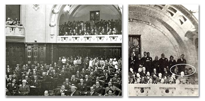 El día de la inauguración de la Constituyente, nos dirigimos todos al solemne acto. Sin embargo, Dña. Lucilia tenía una molestia en los pies a causa de un problema de reumatismo, que no le permitía estar mucho tiempo de pie. Por eso llegamos muy temprano y la llevé a una galería, un espacio privativo del que los diputados podían disponer para sus invitados. Empezaron a sonar las campanitas, anunciando el inminente inicio de la sesión. Tuve que dejarla y bajar a toda prisa al recinto de los diputados.