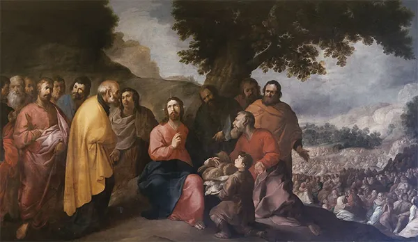 La escena es en extremo atrayente: el Señor en lo alto de la montaña, seguramente sentado en un punto elevado, enseñando maravillas inéditas, y los discípulos en la hierba en torno suyo, escuchándolo encantados.