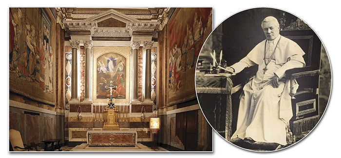 Quizá en recuerdo y agradecimiento por las gracias recibidas durante aquellas horas de angustia pasadas en la Capilla Paulina, San Pío X (1903-1914) conservó en su escritorio, durante todo el tiempo de su sufrido y beneficioso pontificado, una imagen de la Madre del Buen Consejo.