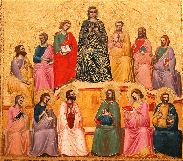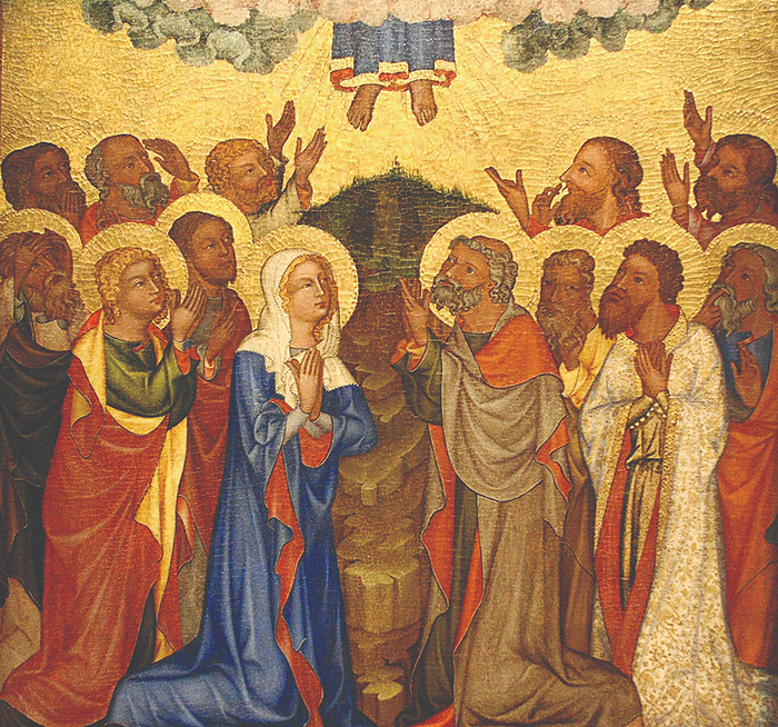 Después de la ascensión, los Apóstoles se reunieron con la Virgen en el cenáculo y estuvieron días enteros en oración, pues, privados de la presencia física del Señor, la manera de permanecer firmes y perseverantes consistía, sobre todo, en estar unidos y con el corazón elevado en ardiente súplica.