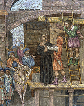 Furioso al verse tan astutamente engañado, el ministro protestante ordenó al verdugo que ejecutara de inmediato la sentencia. Éste, a su vez, le rogó al condenado, entre lágrimas, que lo perdonara por la sangre inocente que iba a derramar.