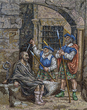 Asemejándose aún más al Señor en su pasión, el P. Ogilvie incluso fue sometido a la humillación de ser despojado de sus ropas antes de ser encarcelado.