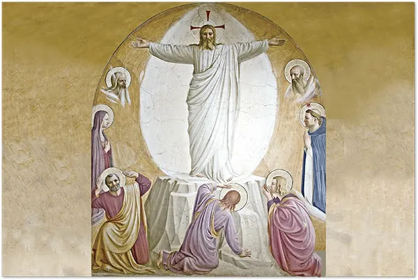 En aquel tiempo, Jesús 28b tomó a Pedro, a Juan y a Santiago y subió a lo alto del monte para orar. 29 Y, mientras oraba, el aspecto de su rostro cambió y sus vestidos brillaban de resplandor. 30 De repente, dos hombres conversaban con Él: eran Moisés y Elías, …